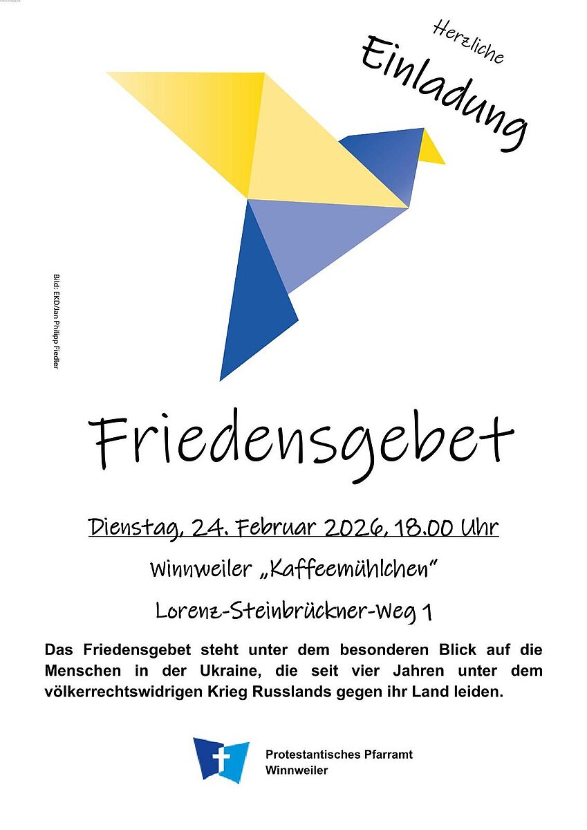 Das Friedensgebet steht unter dem besonderen Blick auf die Menschen in der Ukraine, die seit vier Jahren unter dem völkerrechtswidrigen Krieg Russlands gegen ihr Land leiden.